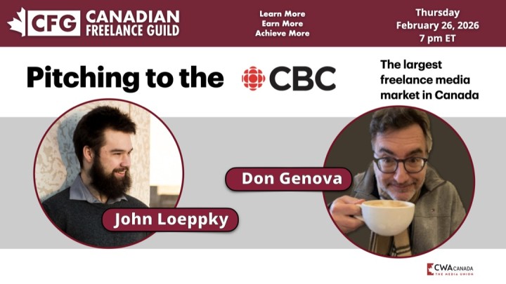 In this special edition of the CFG Experts Panel, we’ll explore what it’s like to freelance for the CBC today — from pitching and editorial processes to building lasting relationships with producers and editors. Hear from freelancers who’ve worked across CBC’s platforms and learn how to navigate opportunities, expectations, and best practices for success.